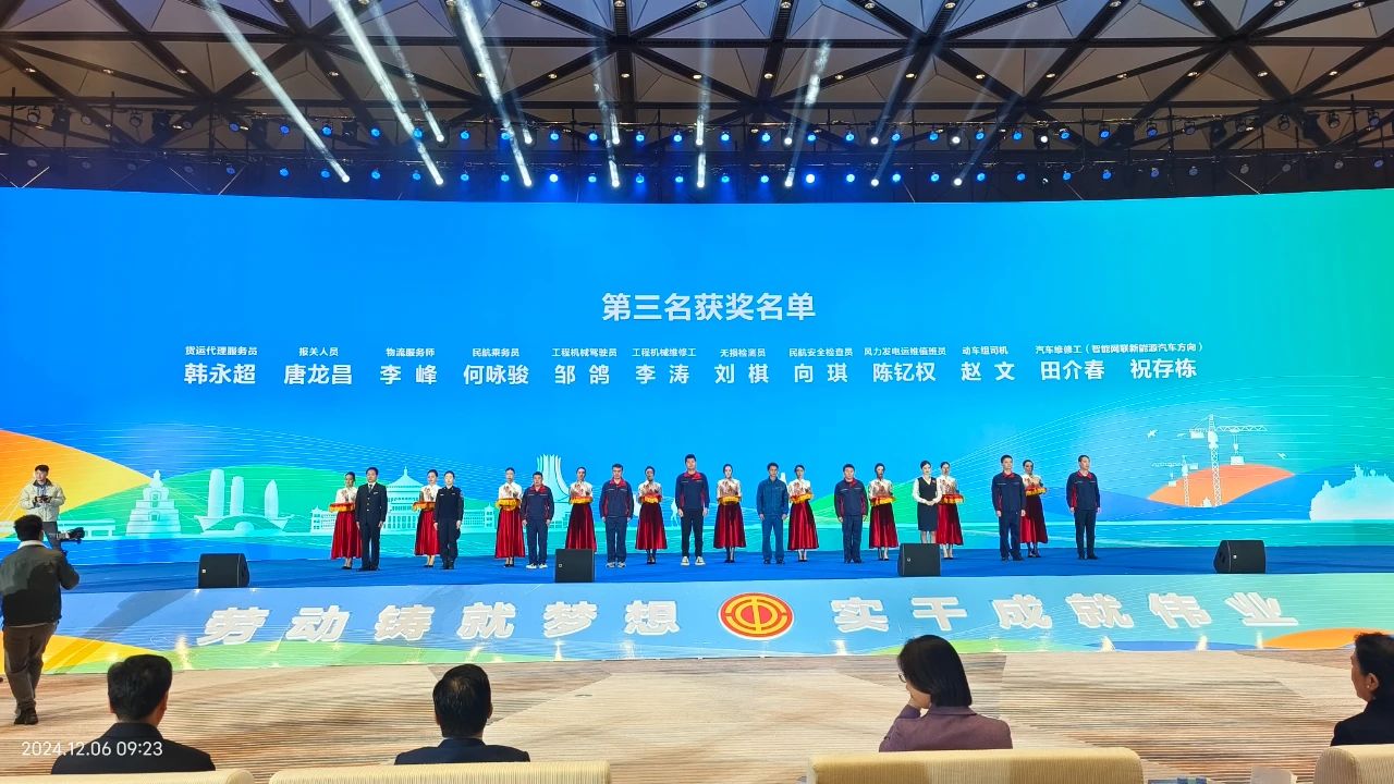 2024年桂渝川甘青新六省(区、市)西部陆海新通道建设全国引领性劳动和技能竞赛历时3个月,于12月6日,圆满落下帷幕,重庆港珞璜公司职工邹鸽、何智勇、田黎代表重庆市总工会参加工程机械驾驶员、工程机械维修工项目技能竞赛决赛,其中,邹鸽、何智勇分别斩获工程机械驾驶员项目技能竞赛第三名、第五名两项佳绩。
